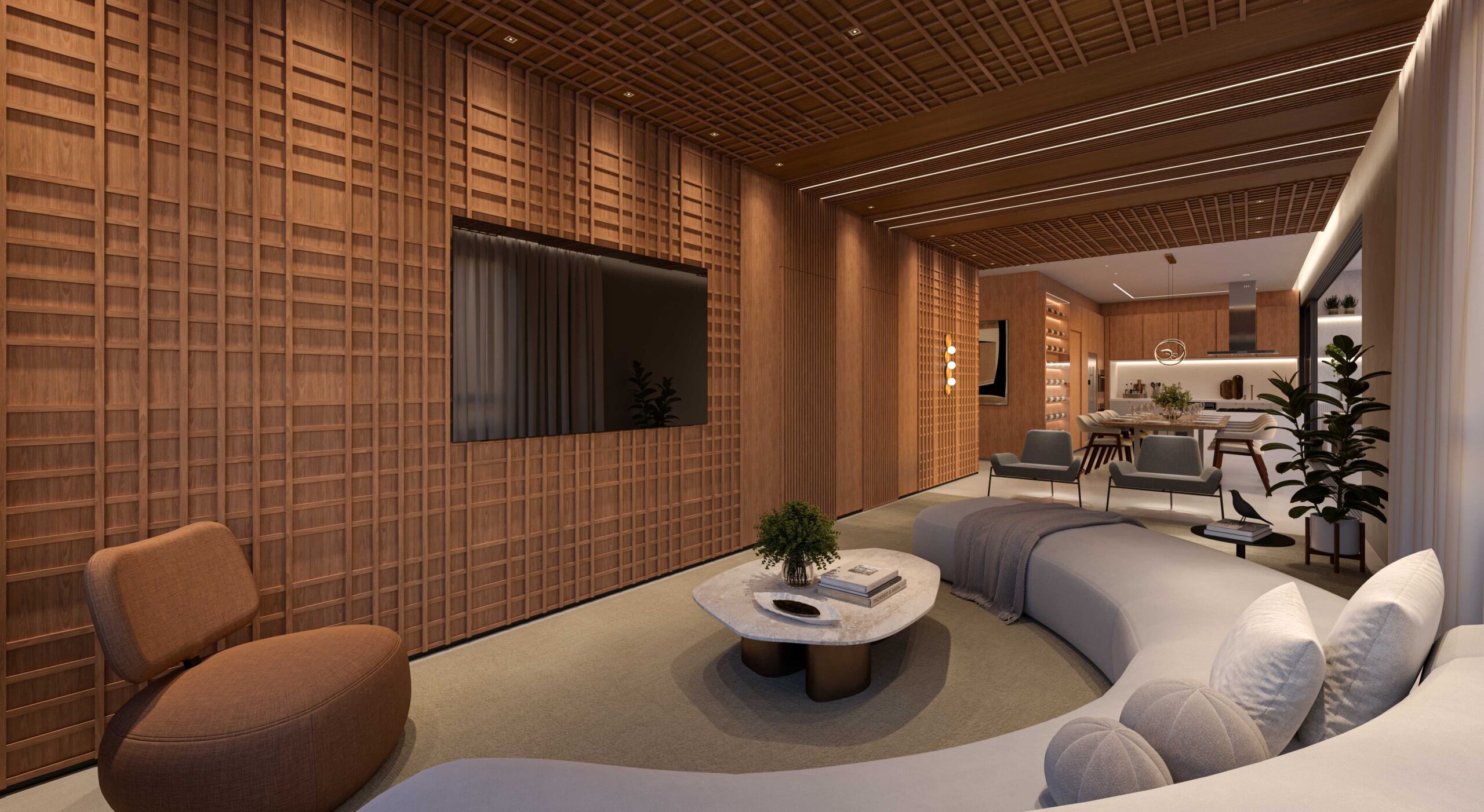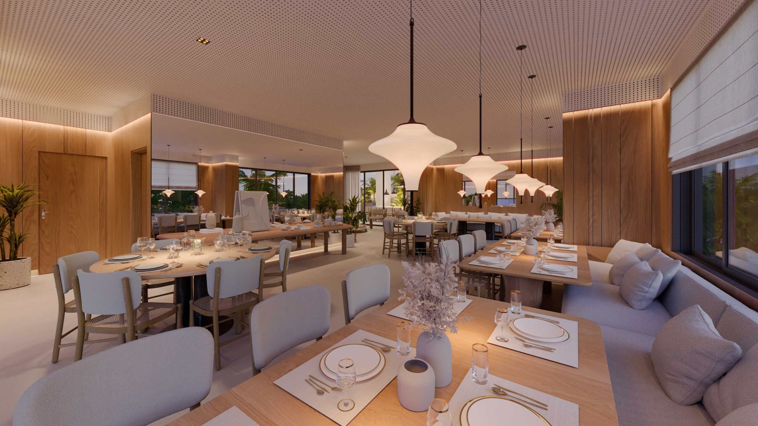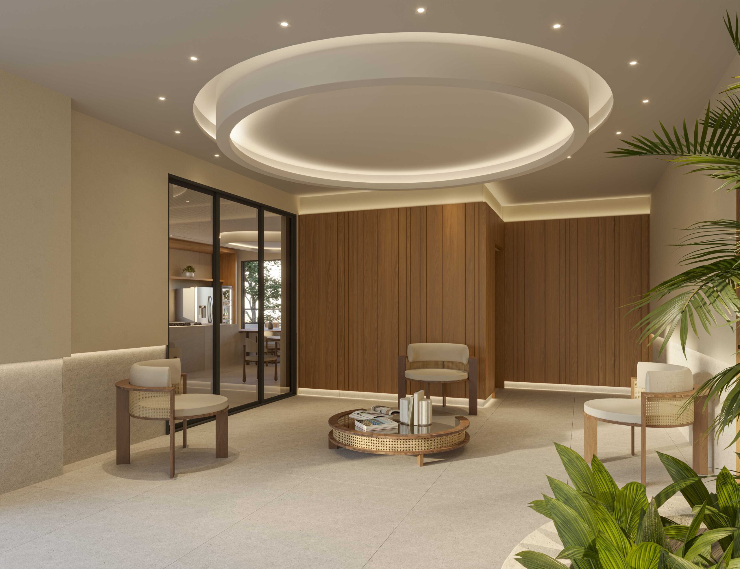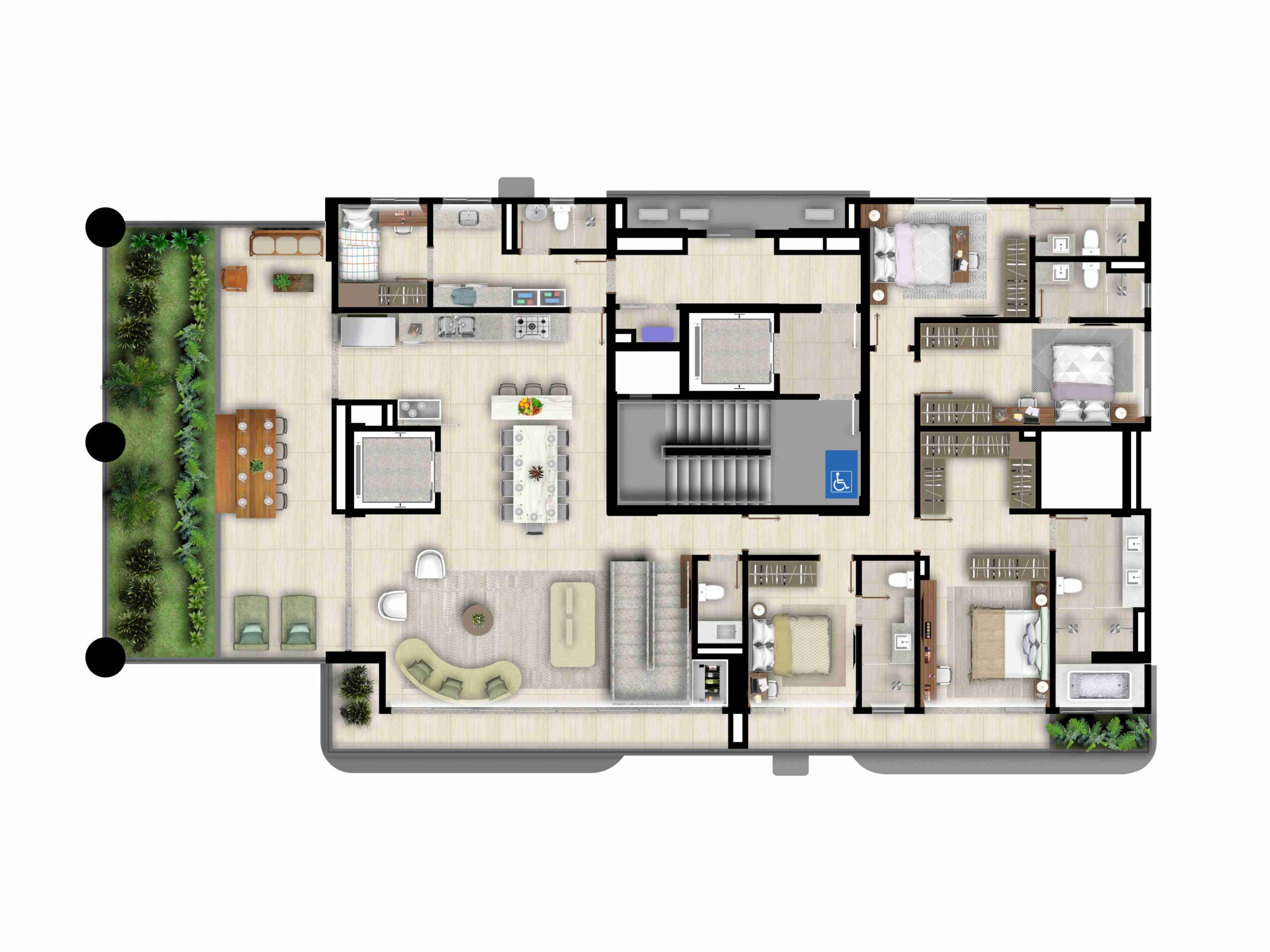 • Pisos em porcelanato de grande formato (120×120 cm) nas áreas sociais, e banheiros com pisos e revestimentos em porcelanato 90×90 cm*;