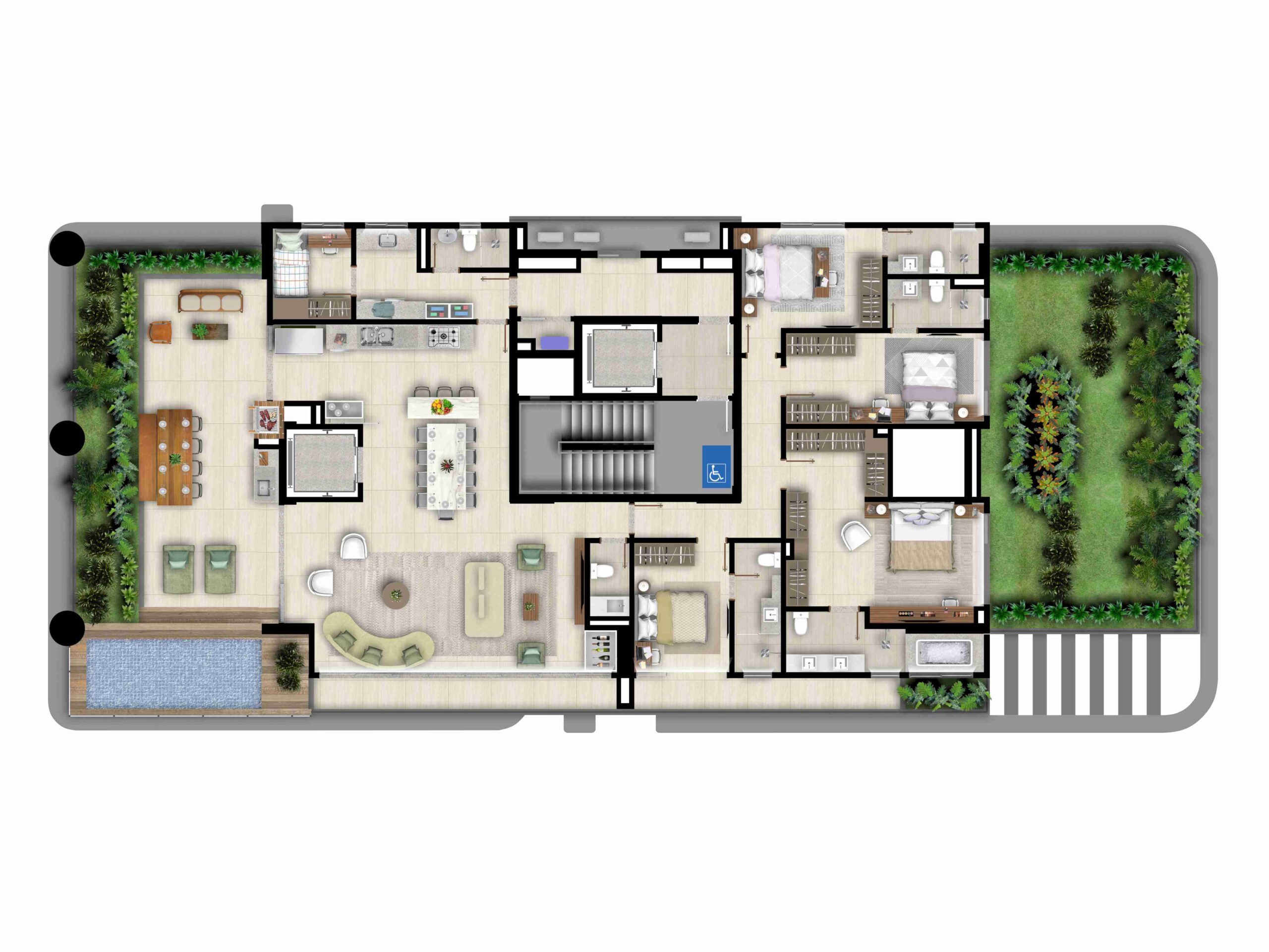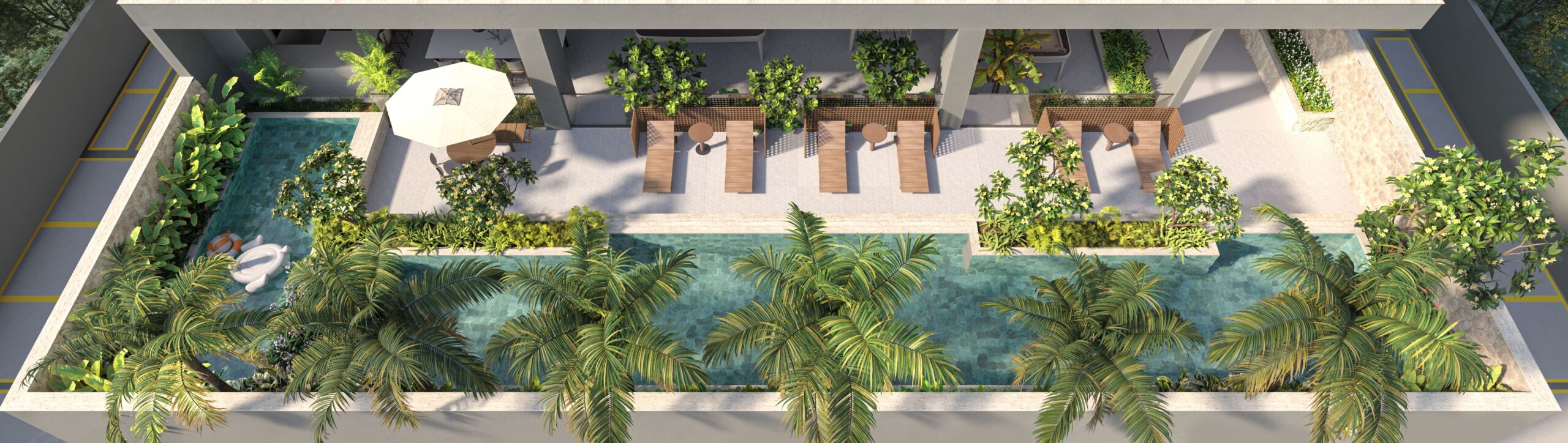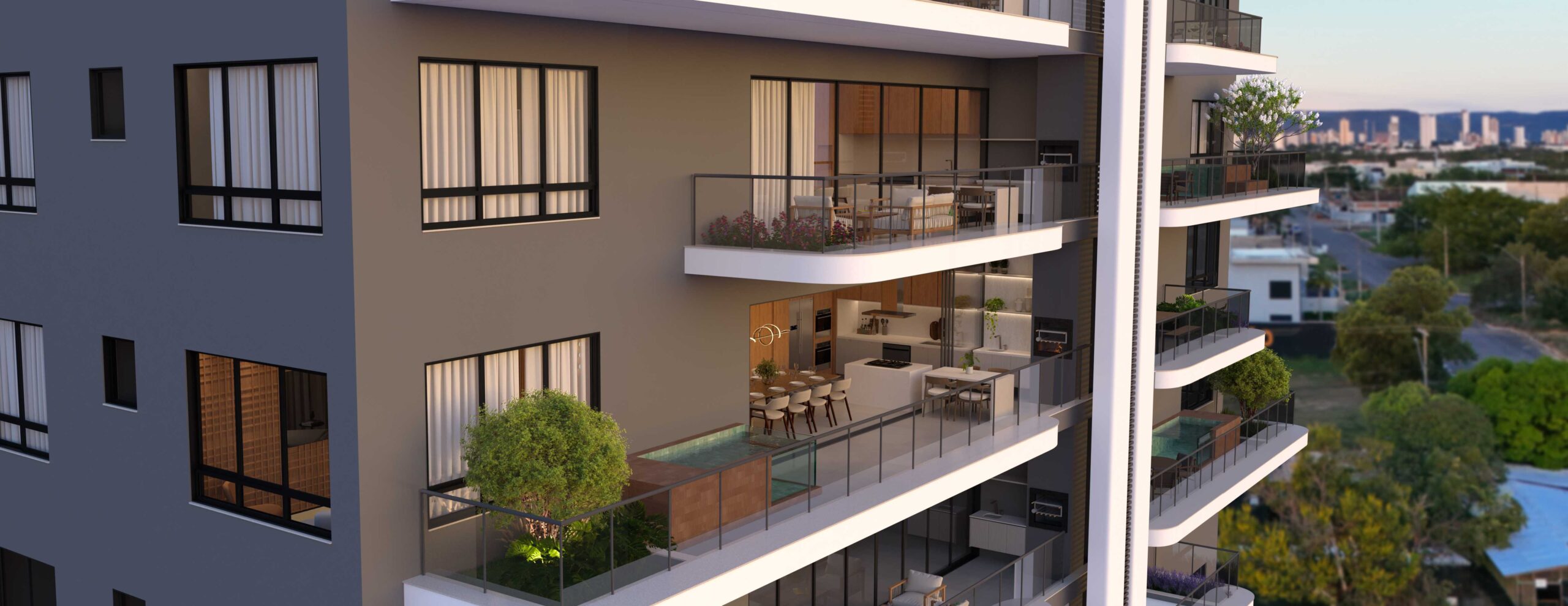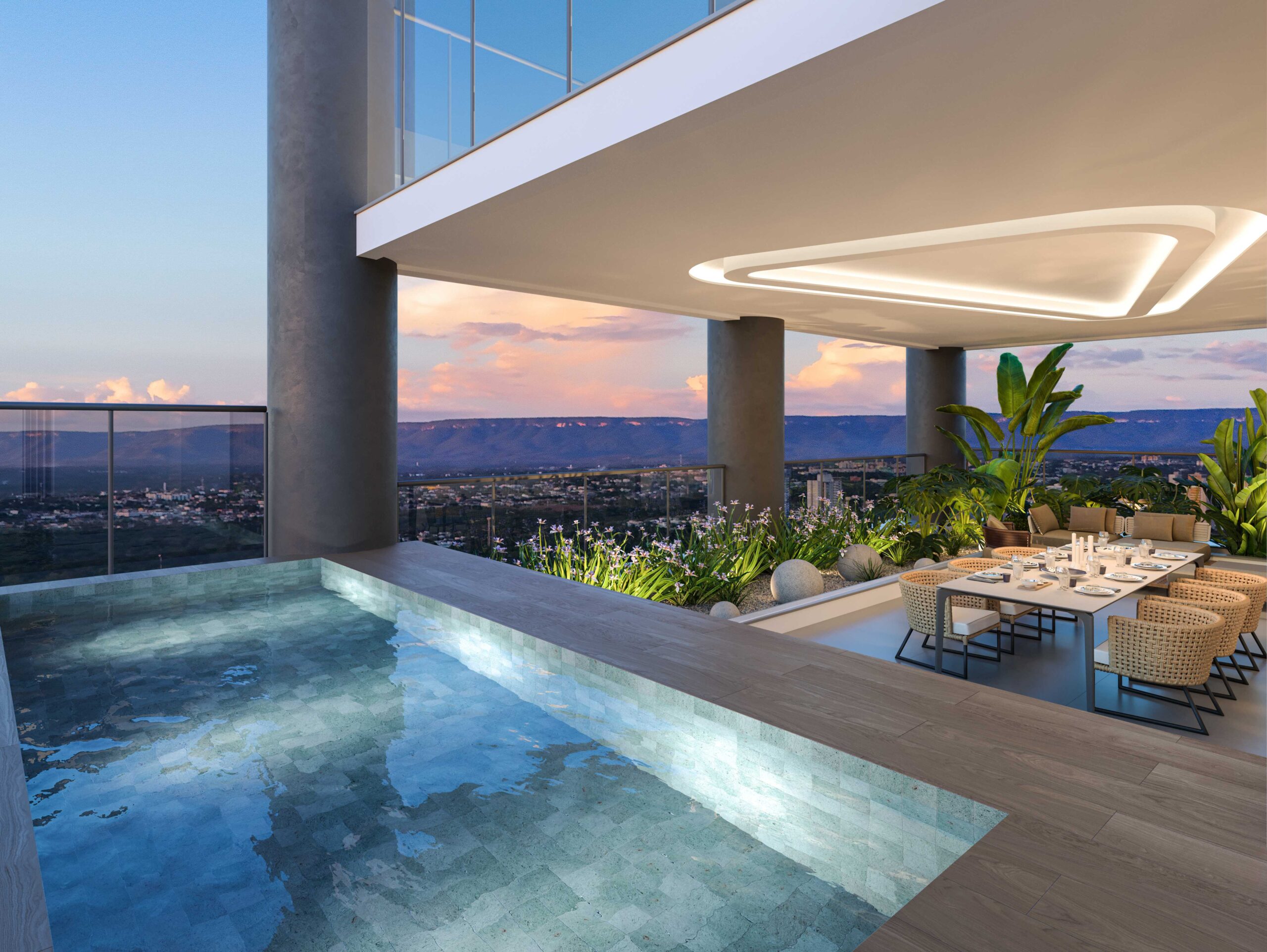 • Apartamentos tipo Penthouses com uma unidade por andar e varanda, jardim e piscina privativa*;
