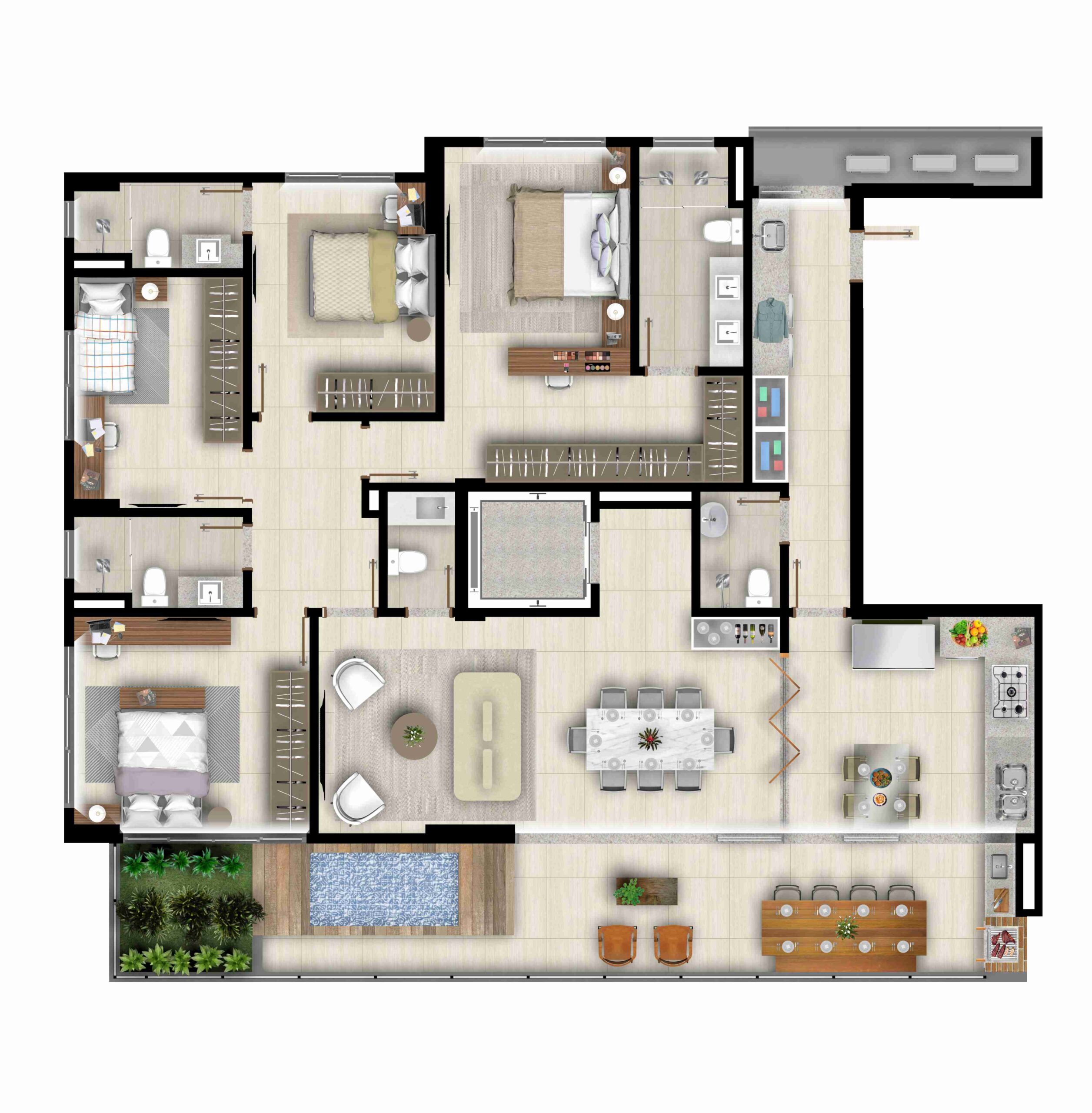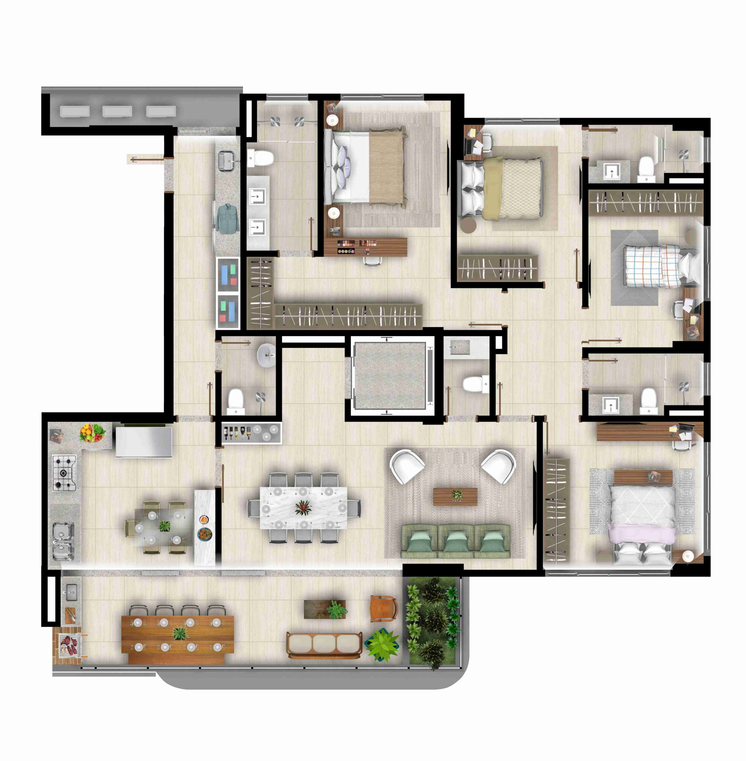 • Ventilação natural em todos os banheiros das suítes*;