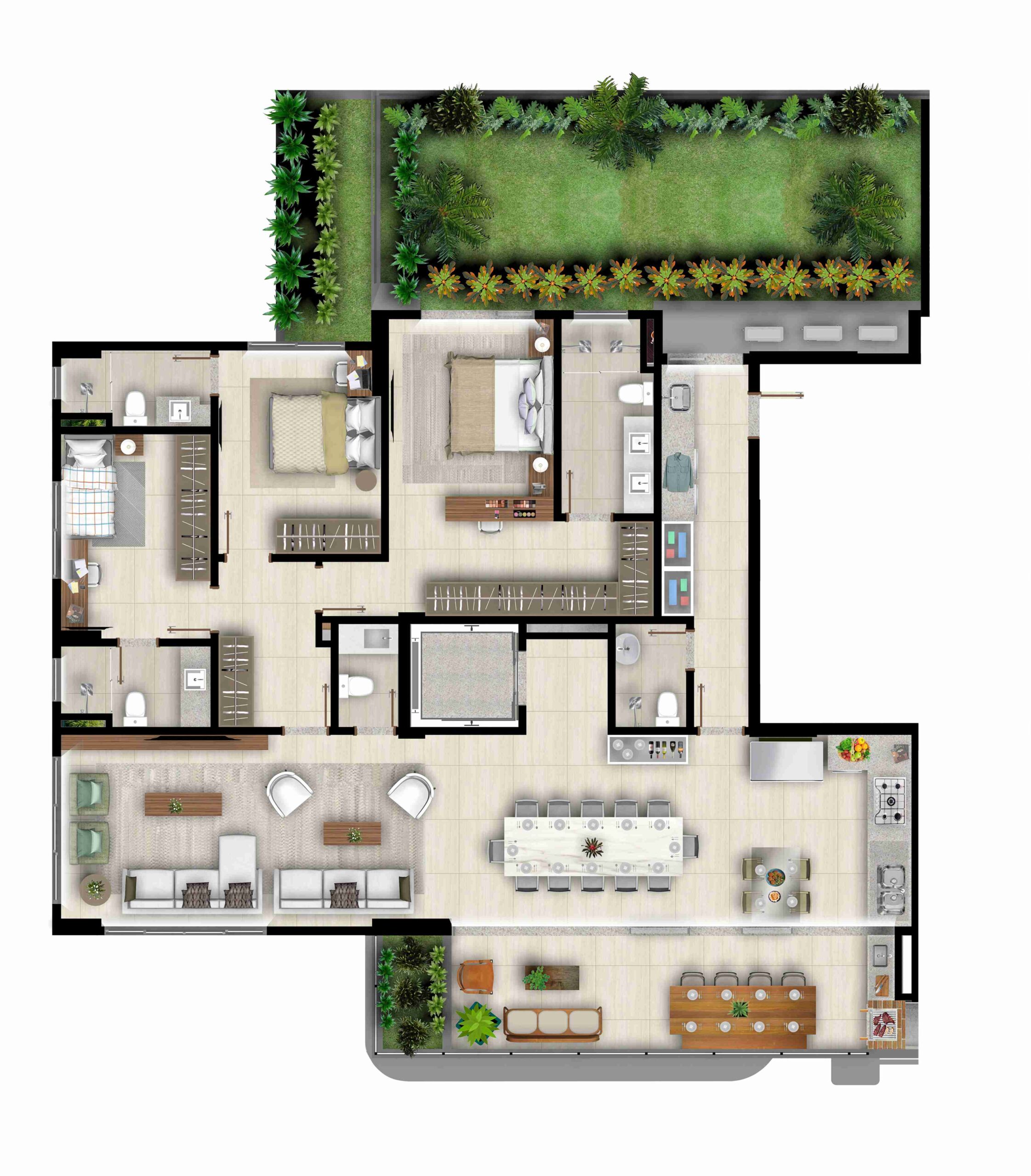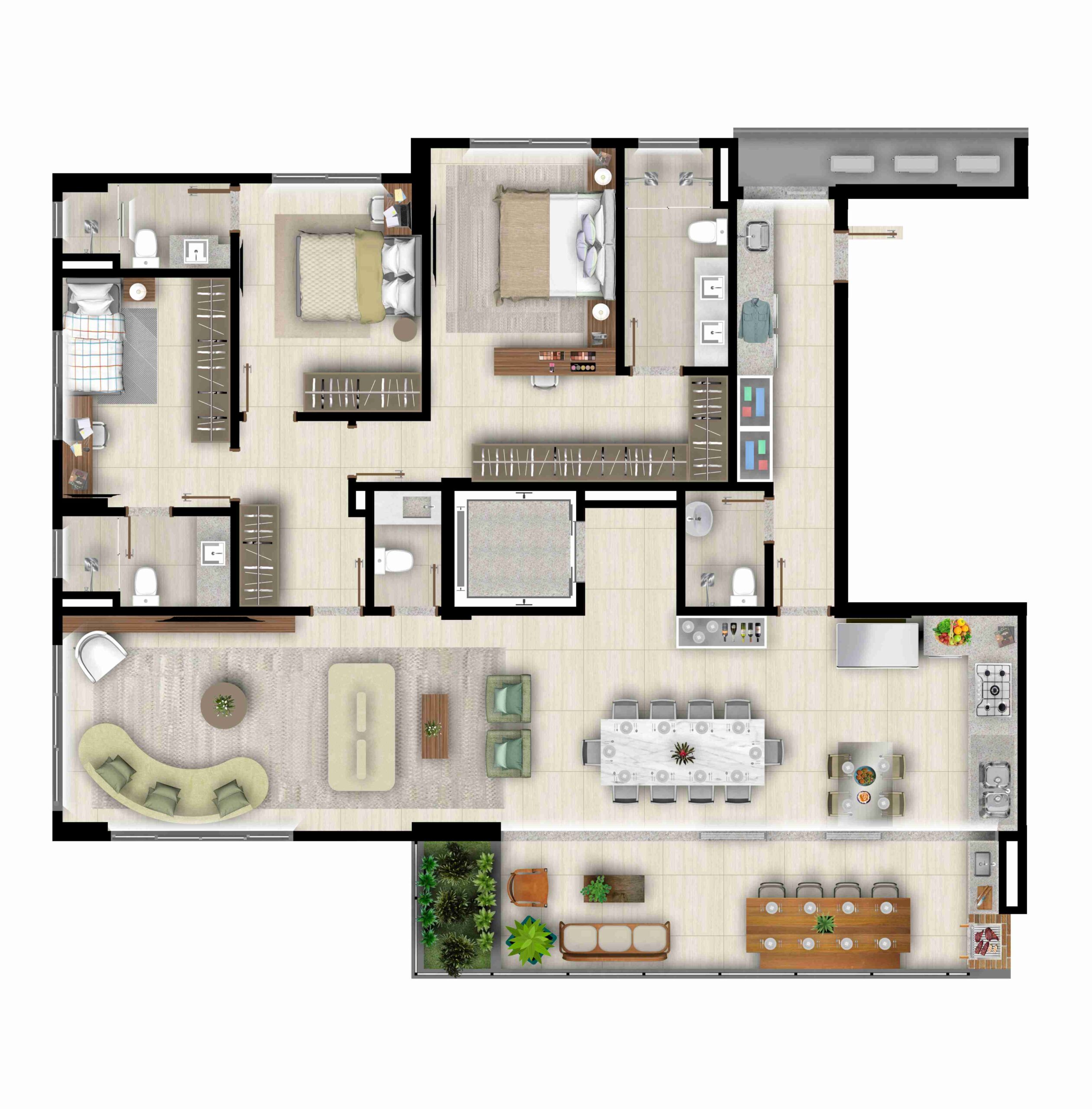 • Ralo linear nos banheiros das suítes*;