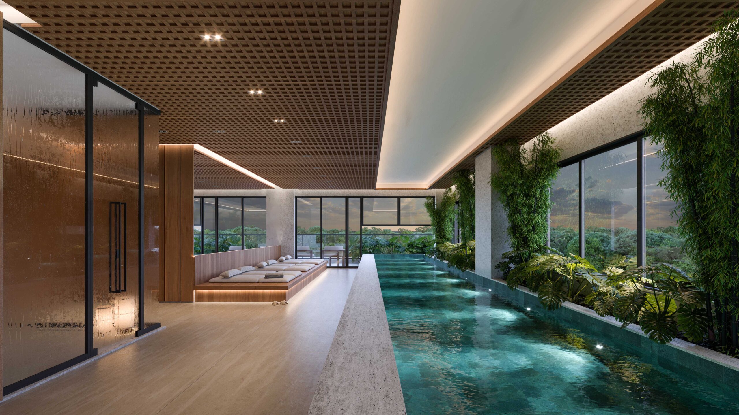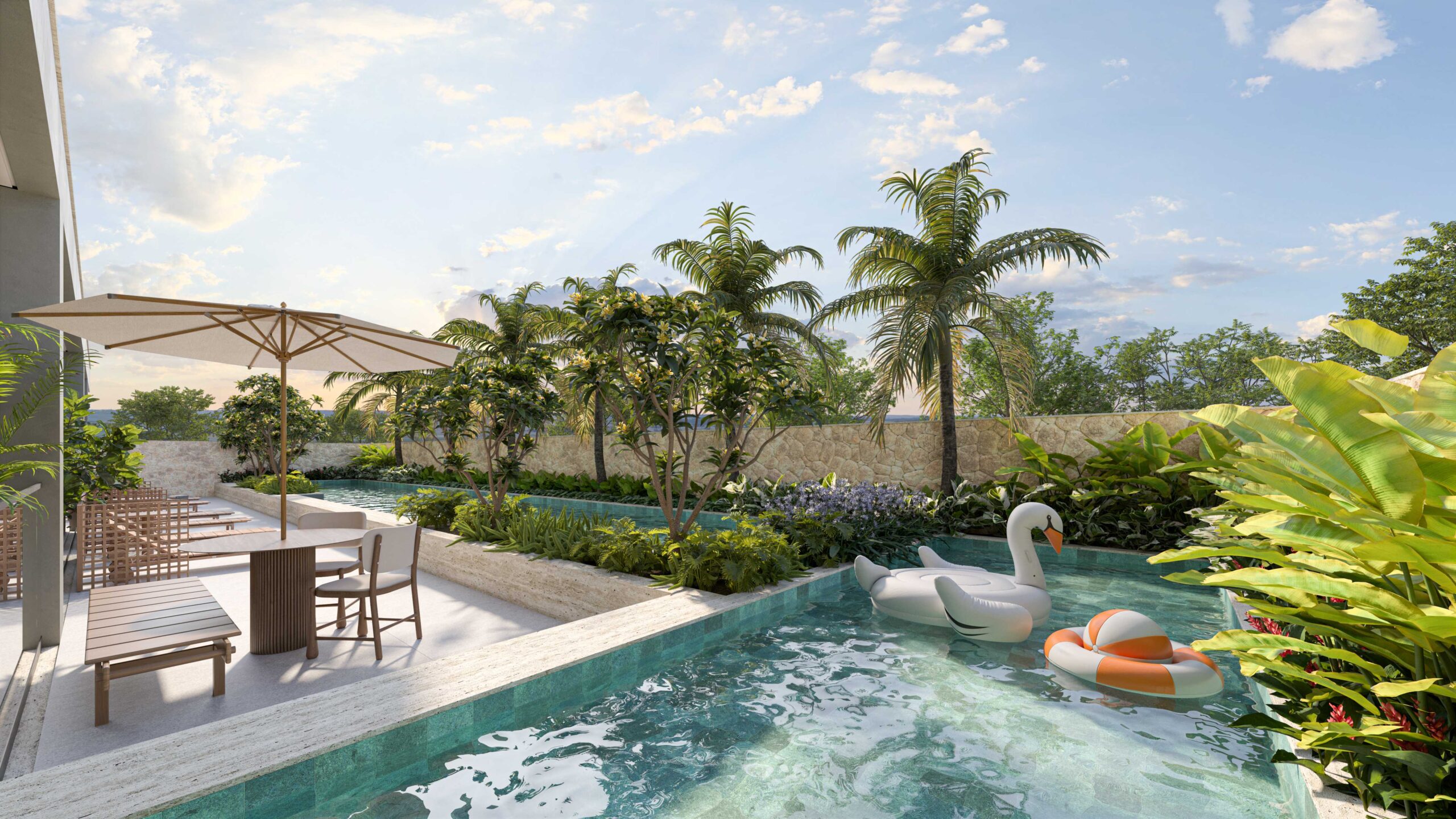• 15 Unidades tipo com piscina privativa em pé direito-duplo e vista para o Parque Cesamar*;