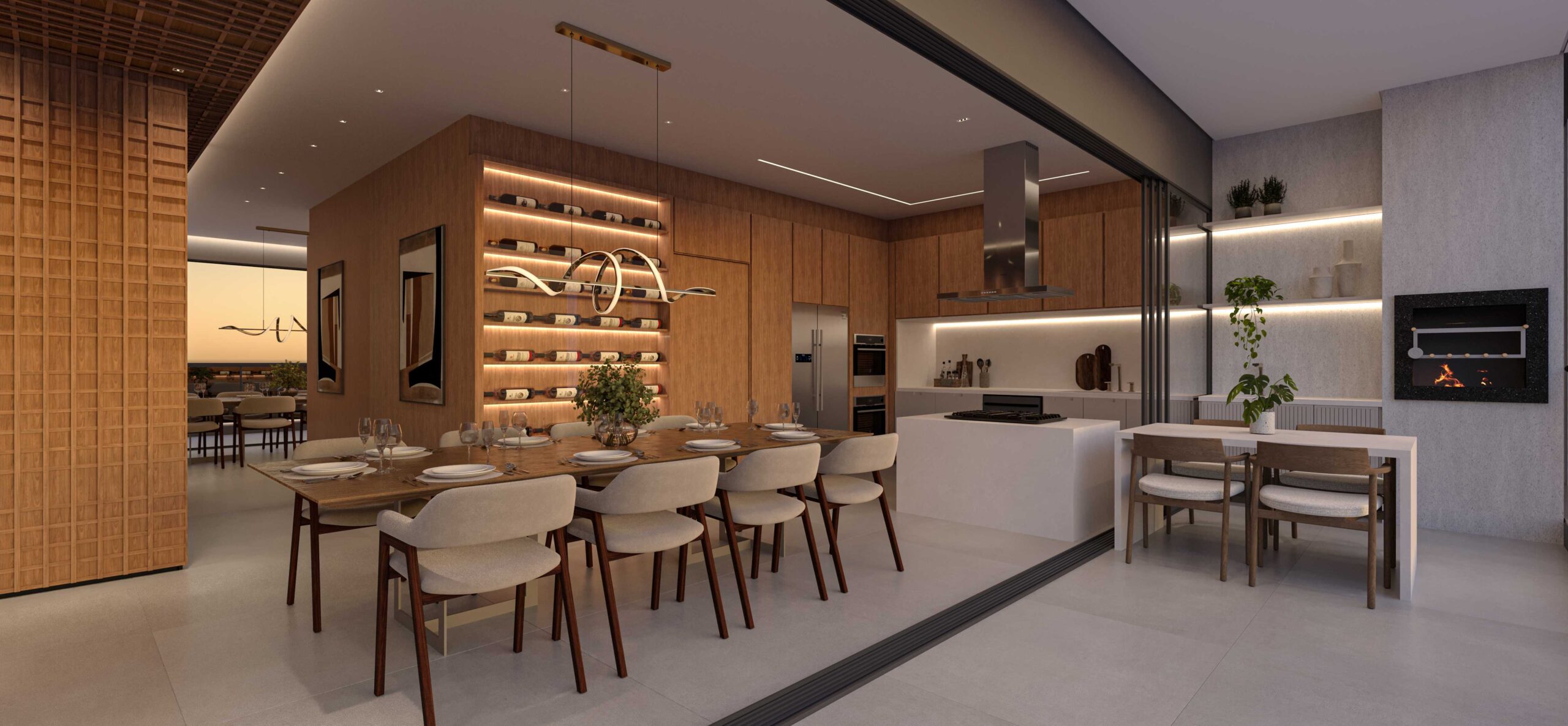 • Cozinha Gourmet com extensas bancadas, cuba dupla, com infraestrutura preparada para triturador de alimentos e pontos hidráulicos dedicados para filtro, geladeira e lava-louças*;